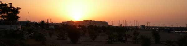 Via smalle winkelstraatjes komen we terecht in de oude haven. Je vindt hier veel oude Turkse en Venetiaanse gebouwen. Vooral de Venetiaanse vuurtoren valt op. Heel gezellig. Tijd om een terrasje te doen. Naast het haventje ligt de oude stad. Het is een doolhof van straatjes met schilderachtige huizen. In een van de vele restaurantjes eten we een slaatje. Het is eigenlijk meer een ruine, het heeft zelfs geen dak, maar toch hebben ze er een gezellige plaats van gemaakt.