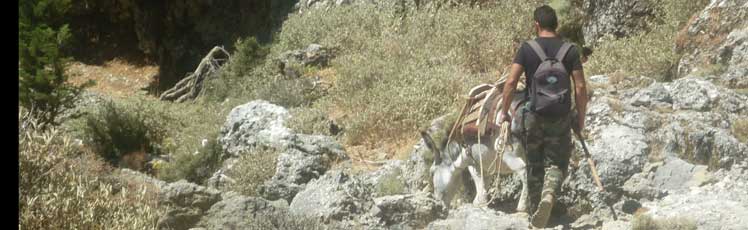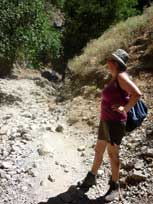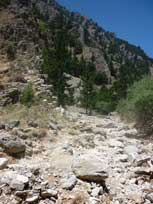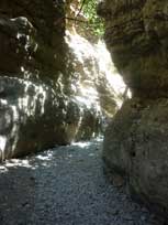 De tocht door de kloof is makkelijk maar toch is het voortdurend lopen op keien soms vervelend. Na 2:30 uur komen we aan in Komitades waar we iets drinken.